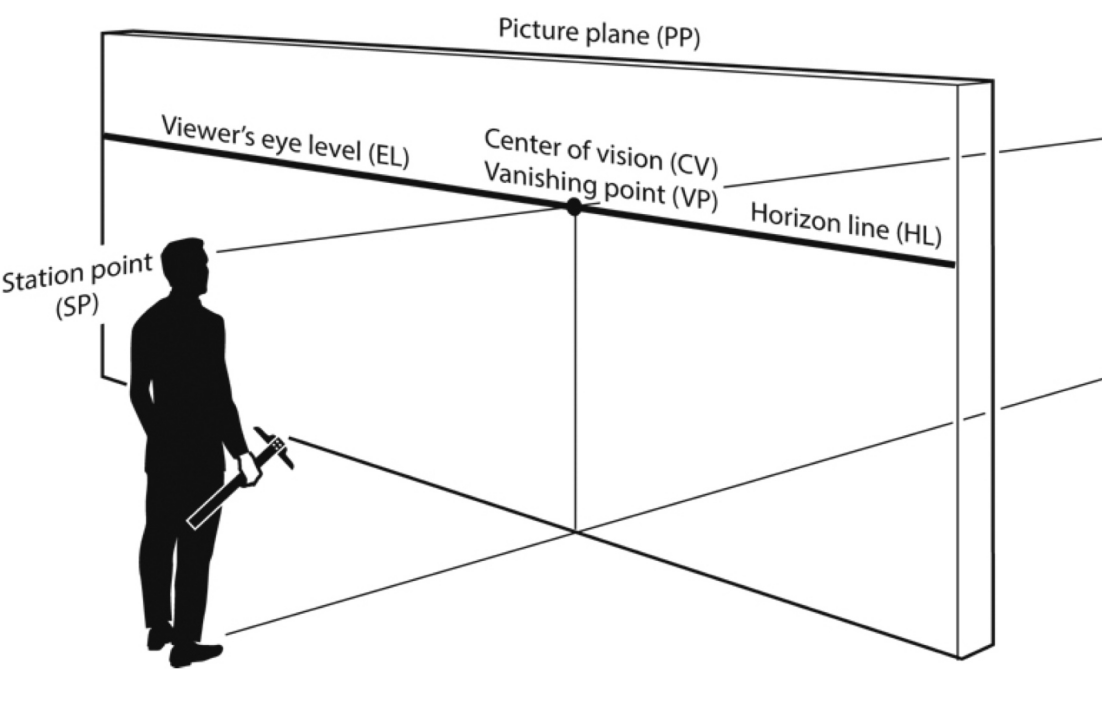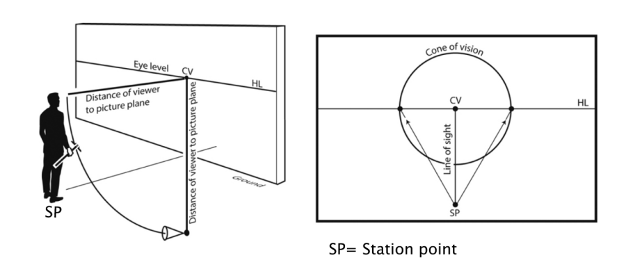 In perspective, we tend to obsess over the vanishing points on the horizon, but the most important part of the scene is actually behind the canvas. This is the Station Point, and it represents exactly where you’ve placed your audience.