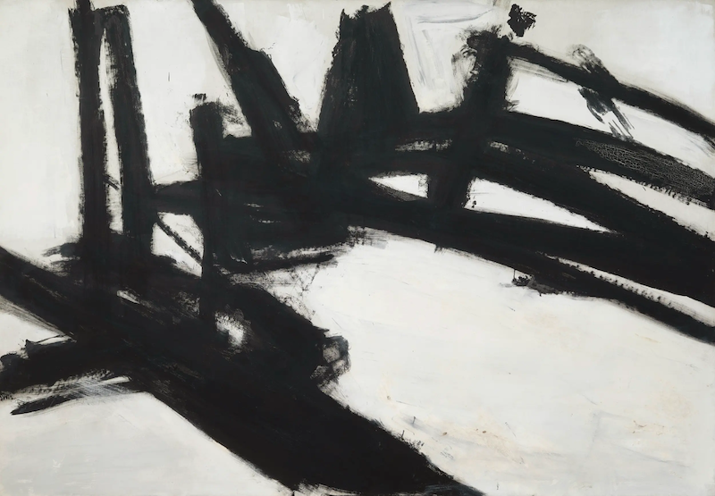 Franz Kline, Untitled, 1957. Oil on canvas, 79 x 112 1/8 inches. Courtesy Mnuchin Gallery. © 2025 The Franz Kline Estate and Artists Rights Society (ARS), New York.