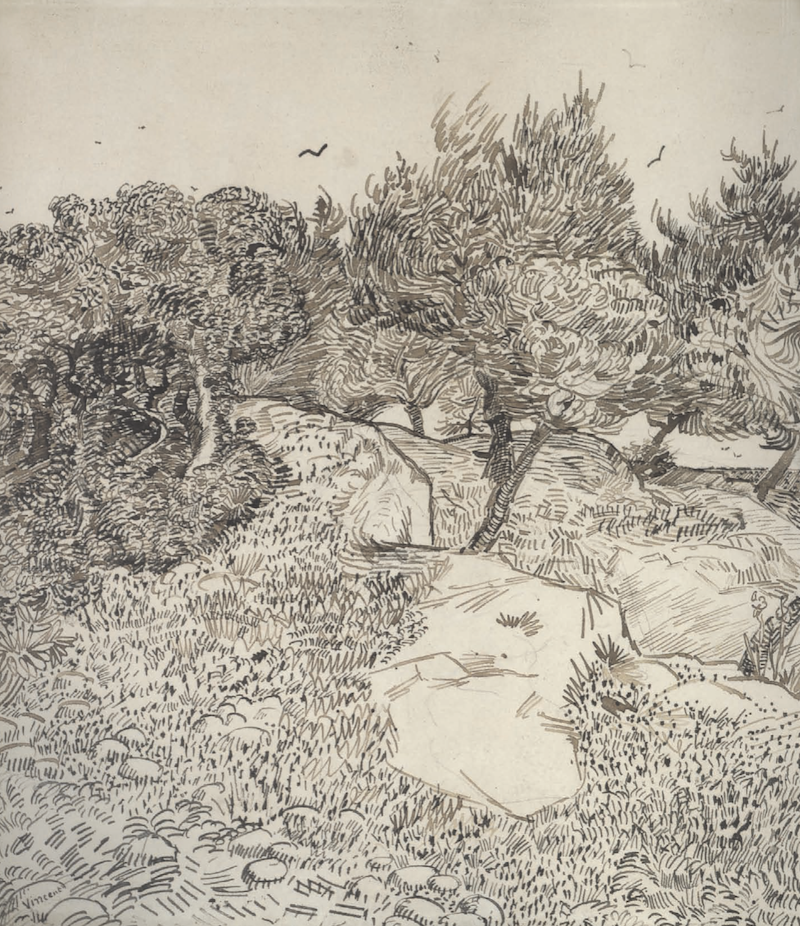 Van Gogh, Vincent. The Harvest (for Émile Bernard). 1888, reed pen and ink on paper, 31.8 x 24.1 cm. Kupferstichkabinett, Berlin.